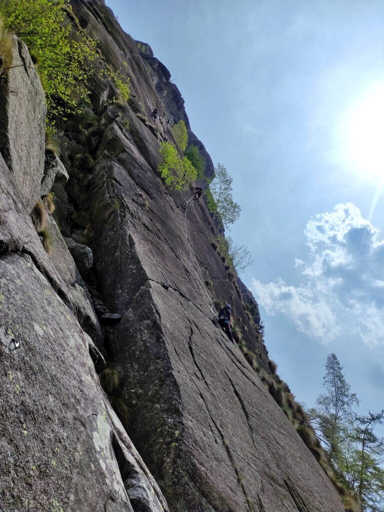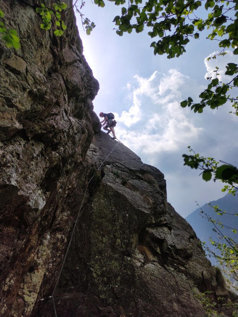 Il 5c obbligatorio ci sta, non è richiesto davvero di più, ma considerate che la via è moooooooolto continua su questo grado, quindi affrontatela solo se l’avete agevole e siete abituati al granito e a questo tipo di arrampicata. Altrimenti lo stress è assicurato.
