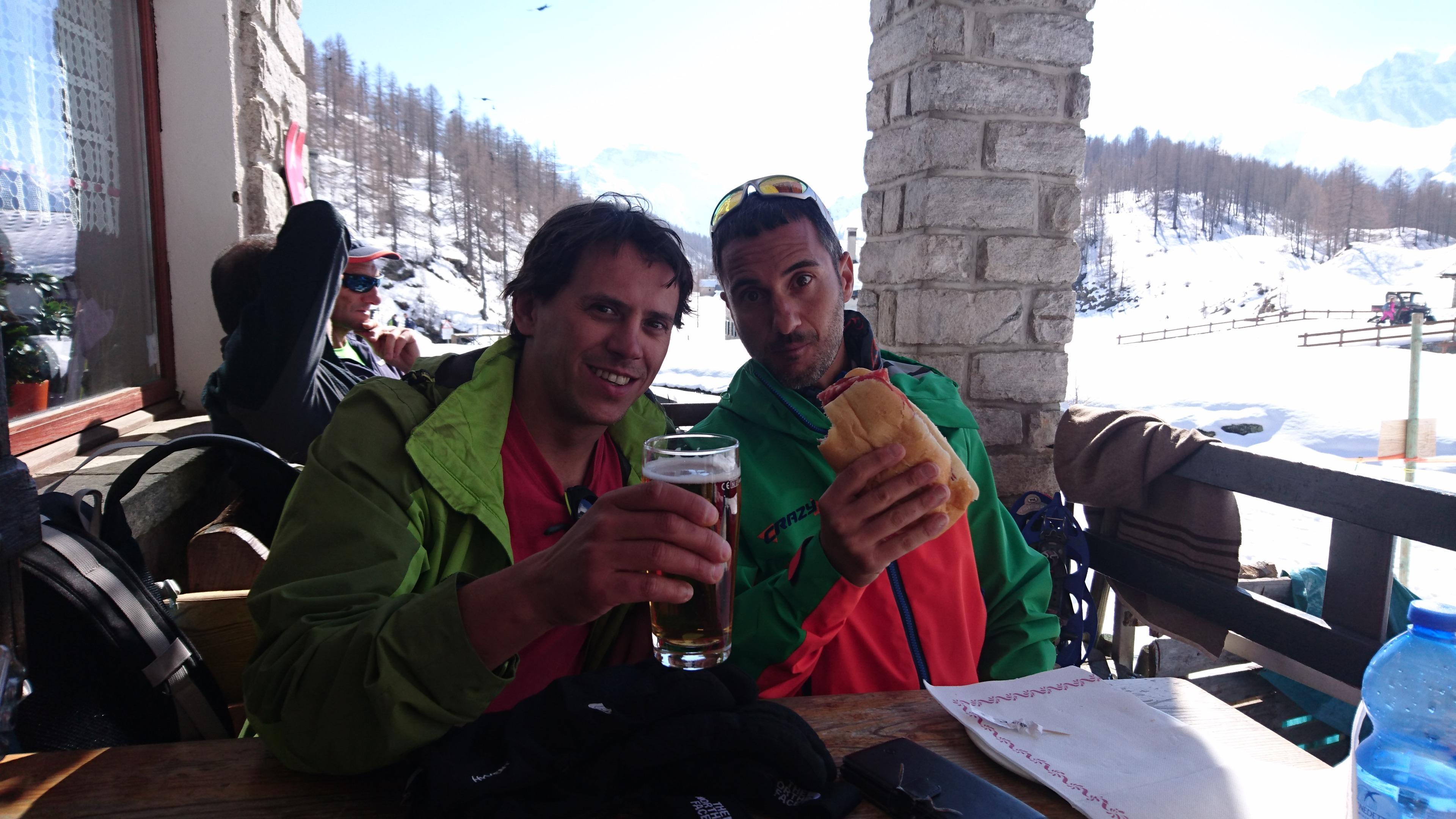 Prima di tornare a valle ci siamo sparati birretta e panino a Crampiolo, godendoci il sole prolungato dovuto al cambio dell’ora.