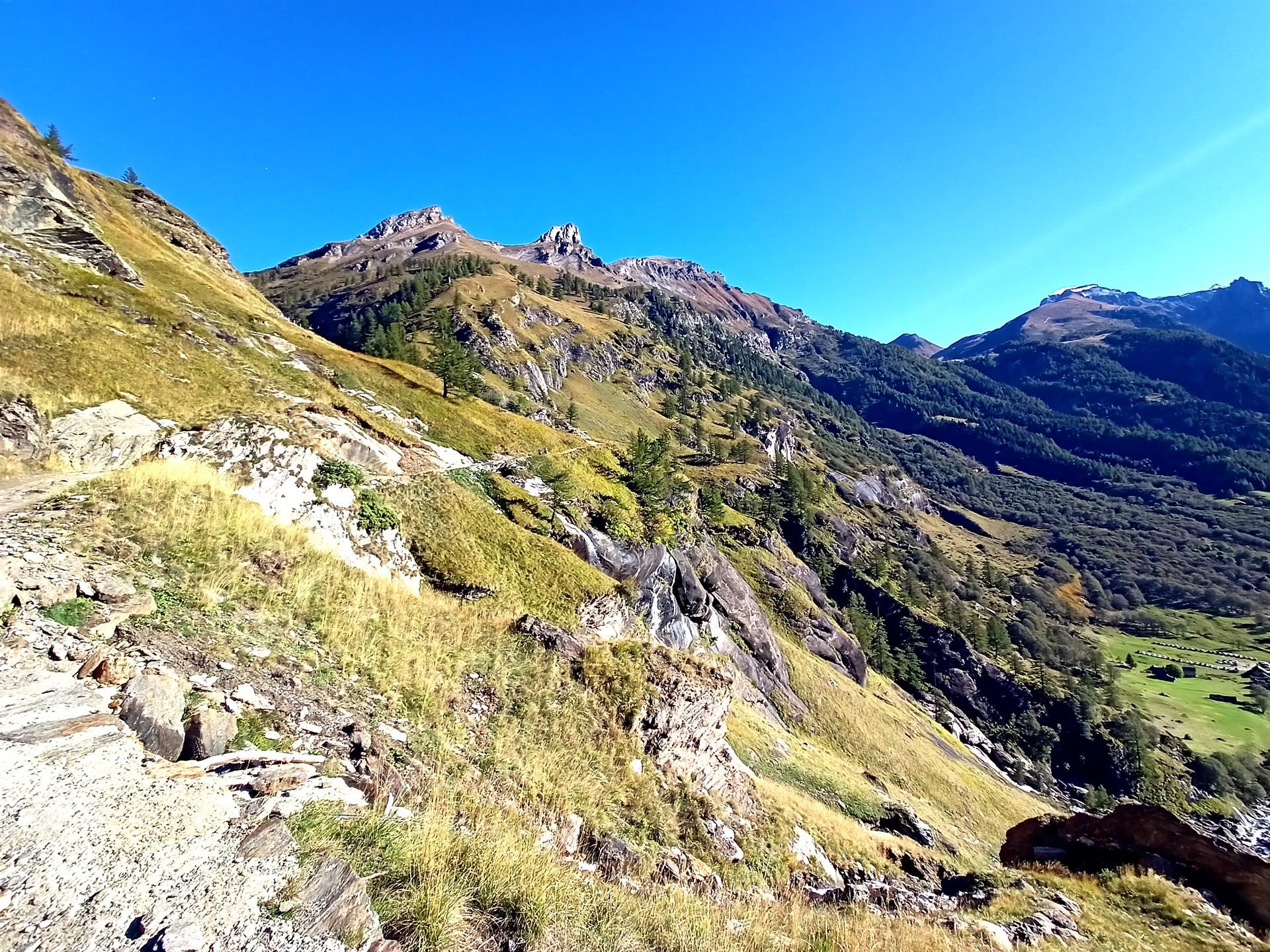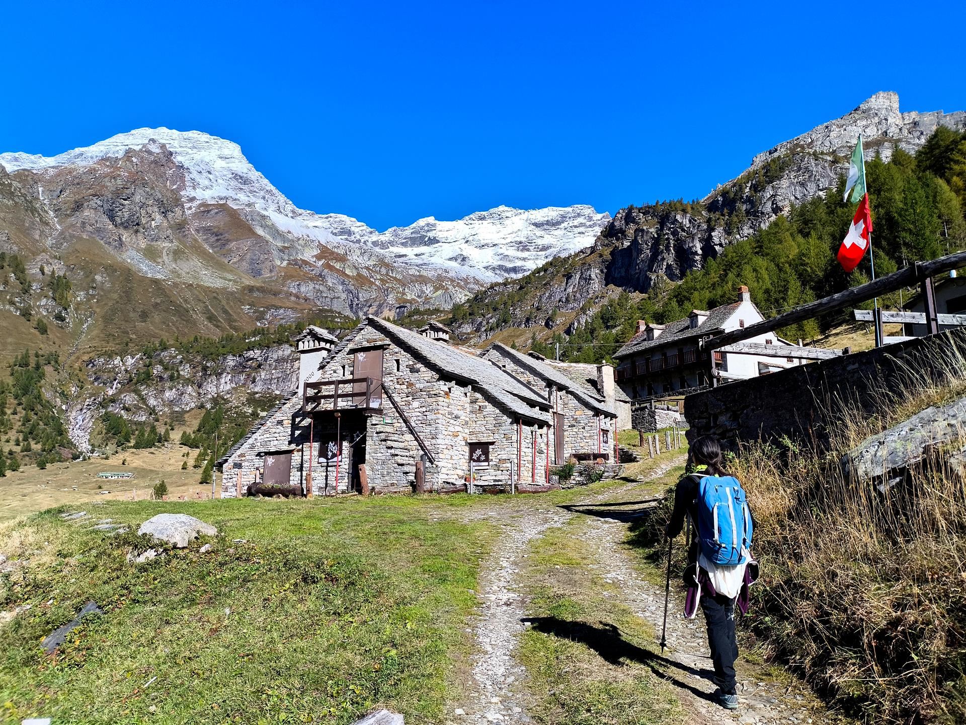 Da qui si imbocca il ponte che supera il Torrente Cairasca e si comincia a risalire l’ampia mulattiera gippabile, prendendo rapidamente quota: l’accesso automobilistico è riservato al “servizio taxi” e ai proprietari degli immobili in quota, dunque di jeep ne passano raramente.