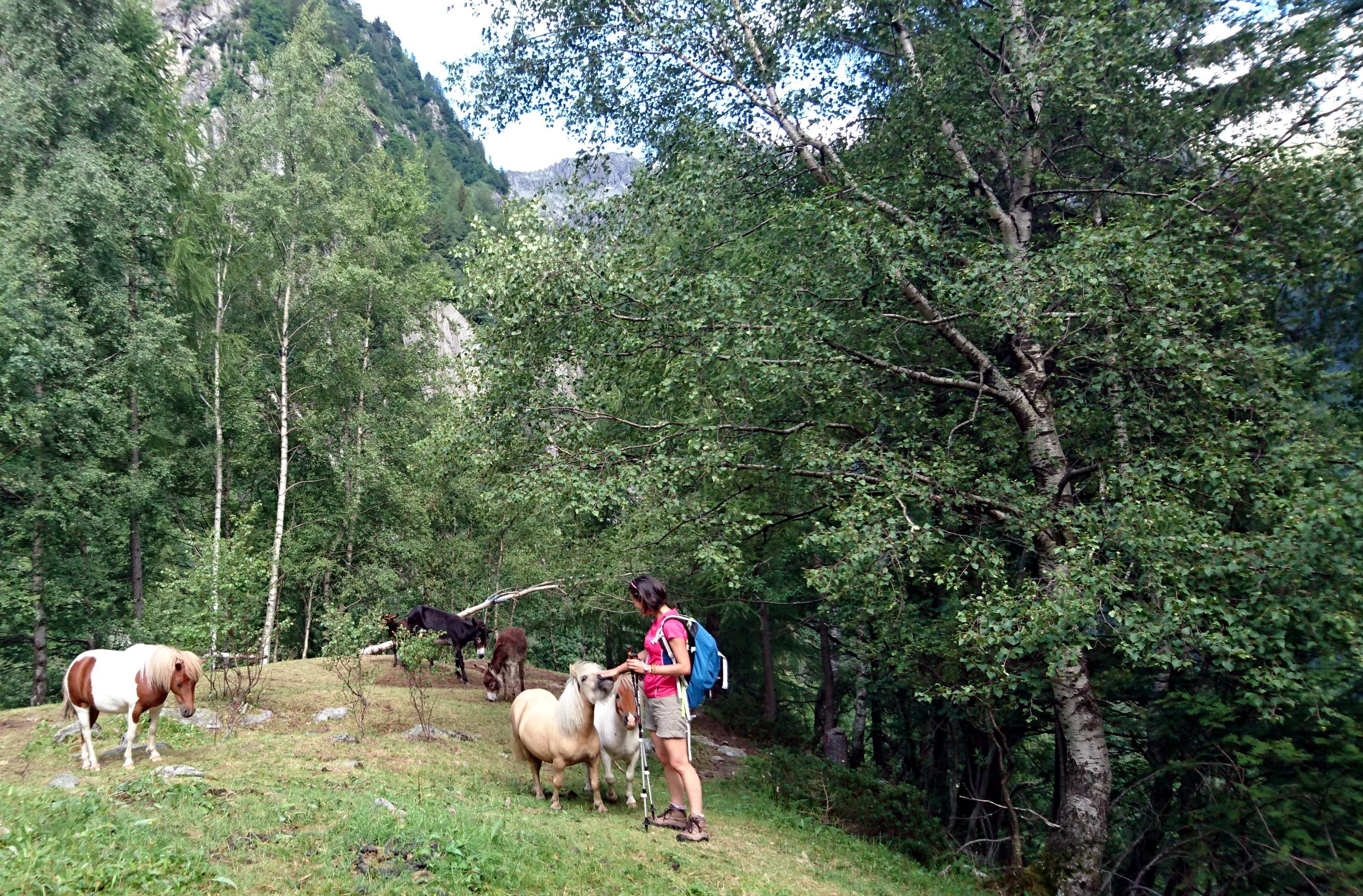 Subito dopo si raggiunge una piccola radura dove abbiamo incontrato i primi asini e qualche cavallino che, stupiti del nostro arrivo, ci hanno accolti con gentilezza, facendosi accarezzare e salutandoci pacatamente.