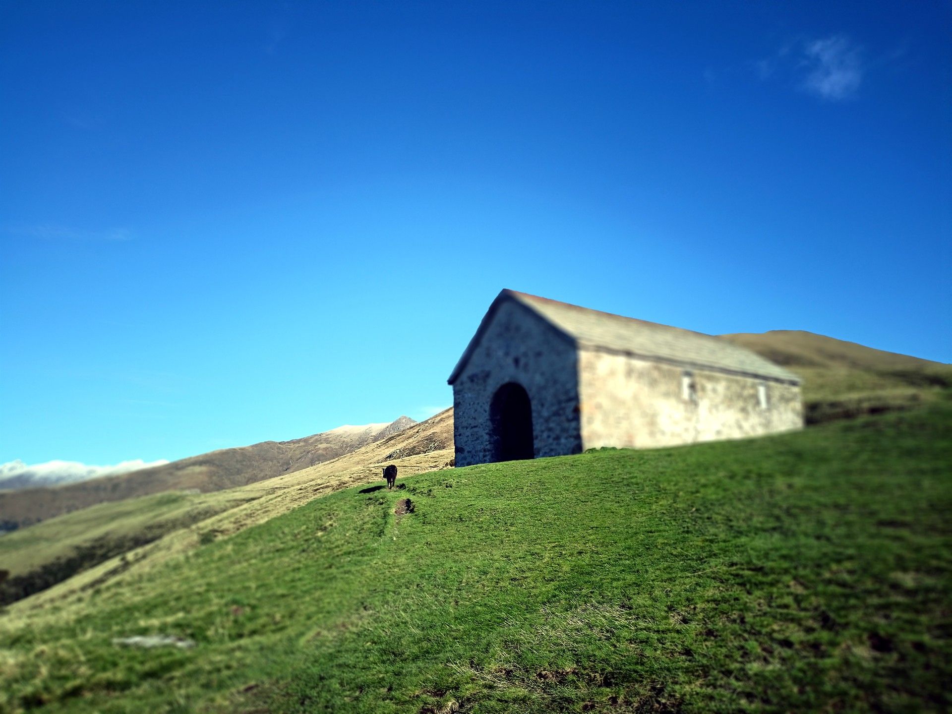 Qui siamo ancora nel bosco e ci resteremo fino ad uscire su prati (si incontrerà un cartello a sinistra verso il Rifugio Menaggio, da ignorare) e proseguire in traverso ascendente fino alla Chiesetta di Sant’Amate, posta sulla sella della montagna.