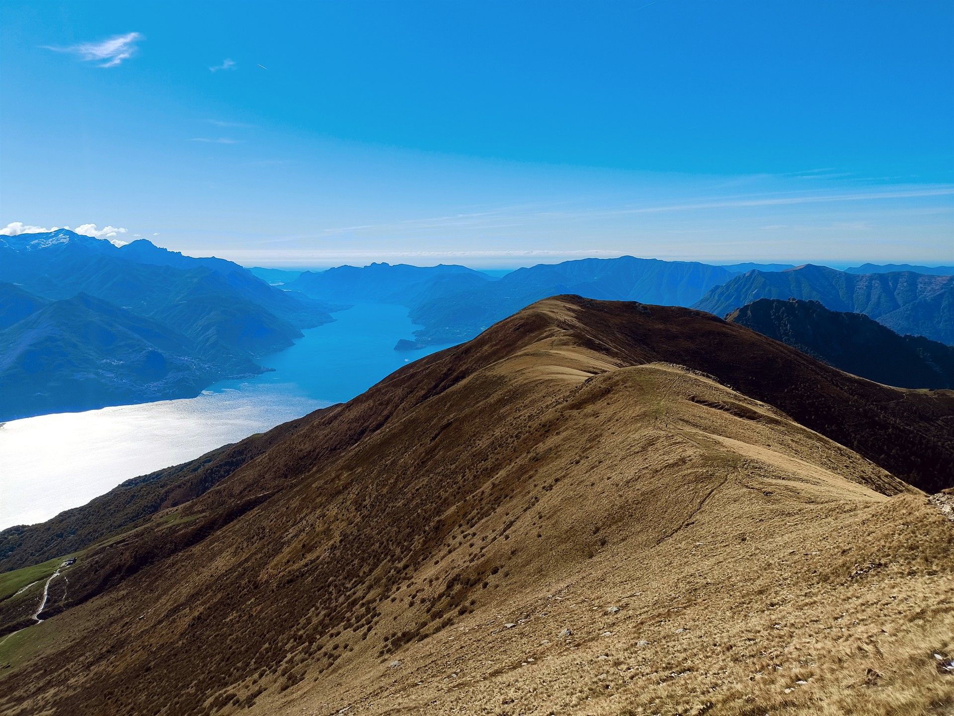 Anello del Bregagno da Monti di Breglia, cresta vista laghi