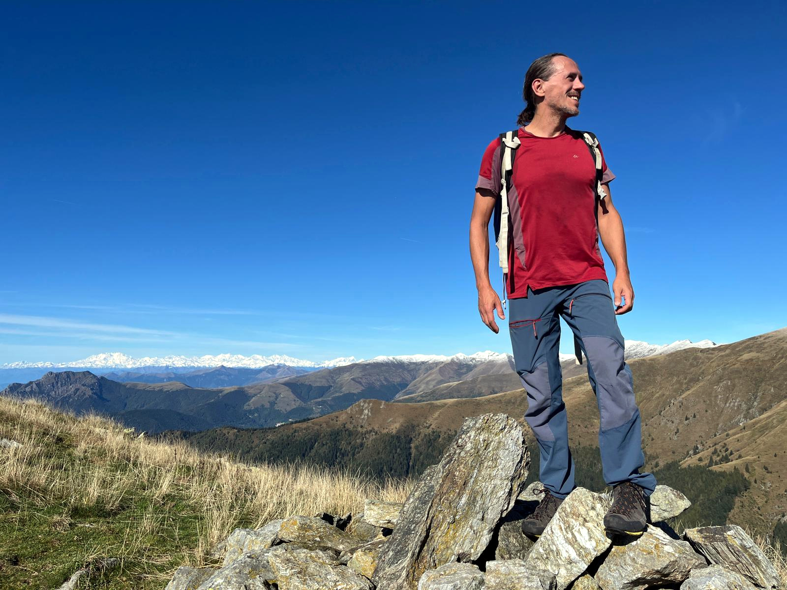 Quindi, visto che le piogge e nevicate in quota sono durate tutta la settimana lasciando poche speranze per l’arrampicata, qui siamo tornati, stavolta a camminare. Il panorama è di tutto rispetto, con due versanti sempre visibili, e zero difficoltà alpinistiche… un semplice sentiero che conduce ad una cima che è una sorta di panettone. Avendo l’allenamento necessario, potrebbe venirci chiunque.