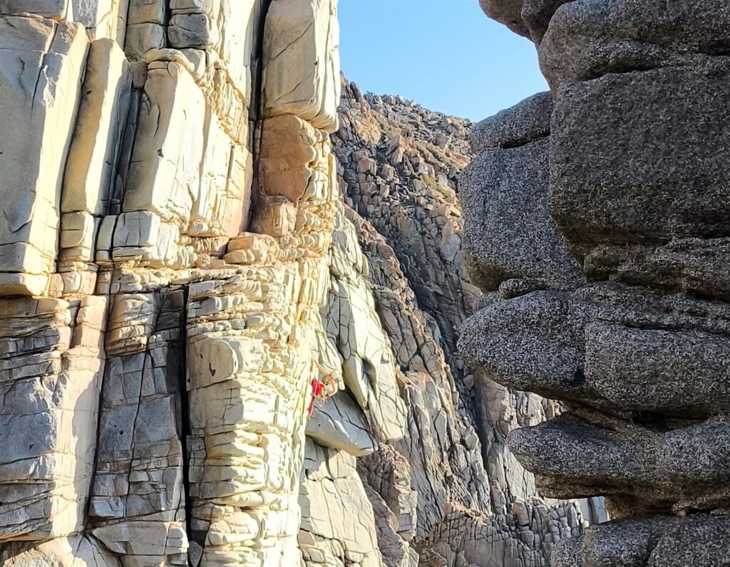 Inutile ripeterlo, qui parliamo di granito: il chè è una figata, visto che può offrire un’alternativa al calcare, onnipresente. Un granito a grana grossa, molto abrasivo ma in alcuni casi bisogna fare attenzione perchè qualcosa si stacca.