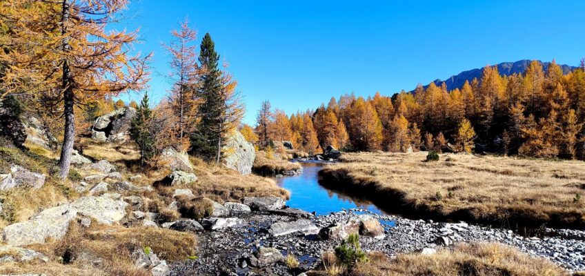 In un secondo dimentichi i lavori in galleria che creano coda già presto al mattino, prendi con filosofia pure l’eterna colonna di auto del ritorno: tutto per la magia dell’autunno, in una valle laterale che non conoscevamo e che si è rivelata davvero sorprendente, la Val Torreggio che nella parte alta diventa Valle Airale.