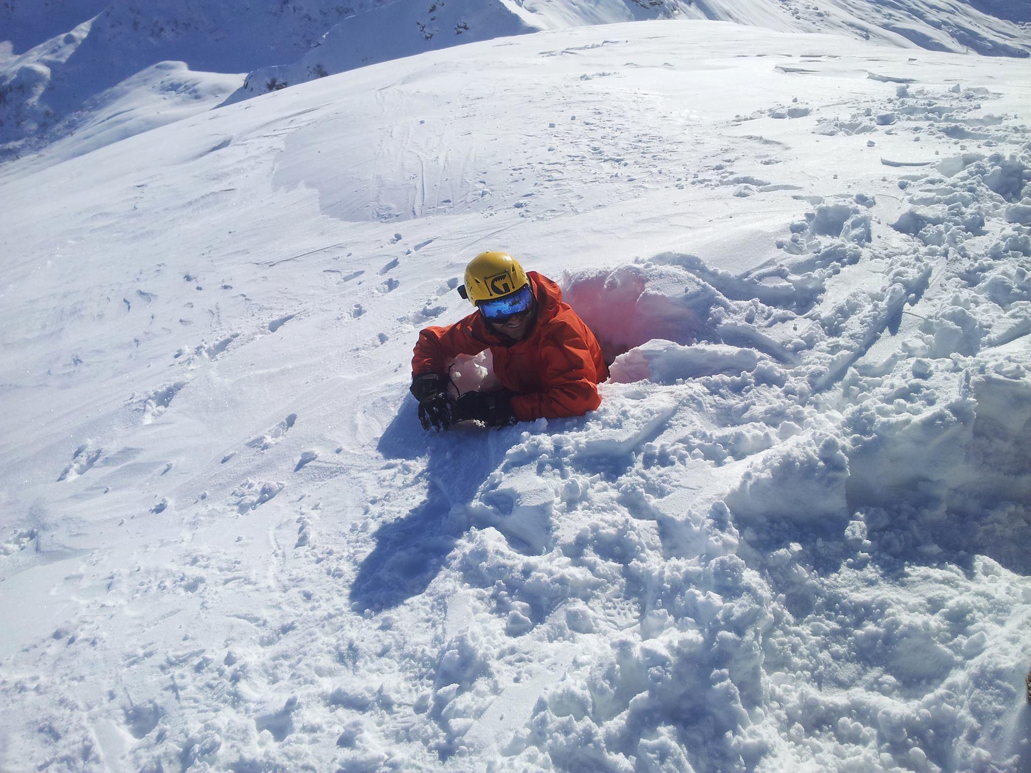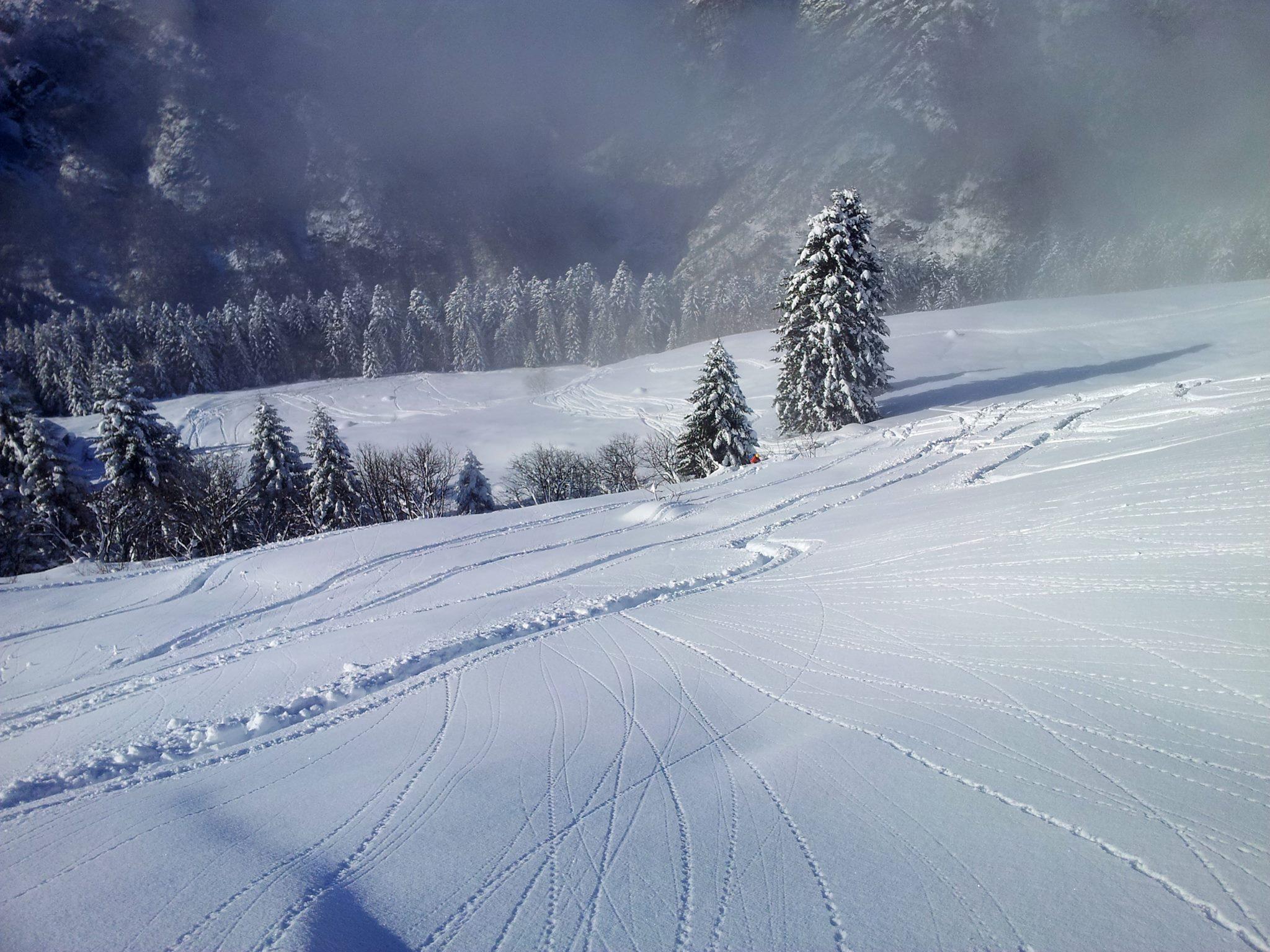 Oggi abbiamo trovato un metro di neve fresca; dopo le nuvole iniziali è anche venuto fuori un gran sole e non tirava un alito di vento.