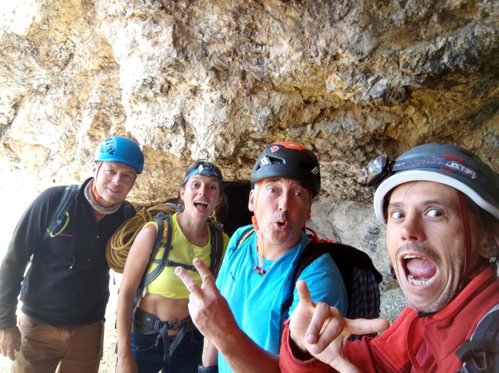 Noi abbiamo sostato sui cavi del sentiero attrezzato perché la sosta ufficiale era impegnata dai nostri due amici, altrimenti saremmo approdati anche noi lì.
