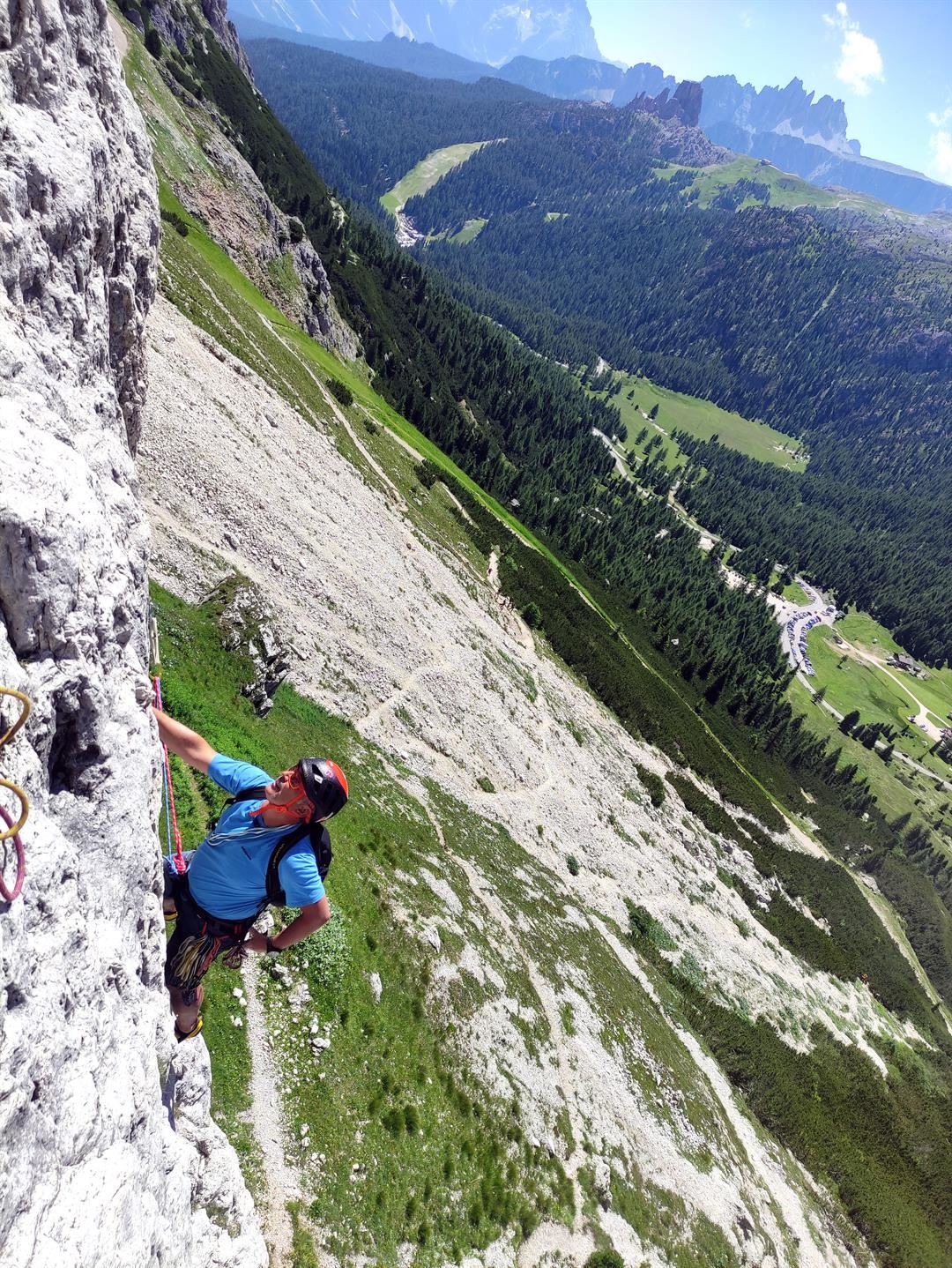 La via è piuttosto gettonata, un po’ a causa del breve avvicinamento dal Passo Falzarego (circa 20 minuti) un po’ perché si trova proprio accanto ad una falesia in quota, cosa che ovviamente la rende appetibile anche ai climbers che sono lì per scalare su monotiri.