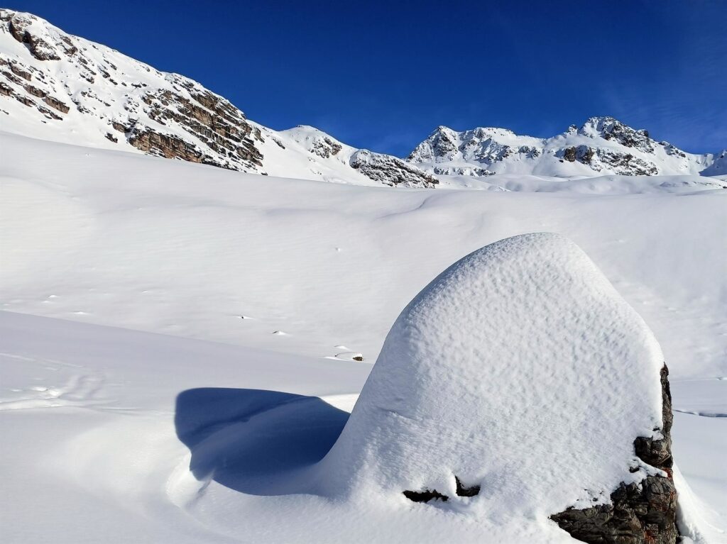 Gita senza pretese ma che offre un paesaggio incredibile, una neve quasi sempre di ottima fattura e (cosa non trascurabile con temperature rigidissime) rimane sempre al sole dall’inizio alla fine (esclusi in genere i primi 100 metri).