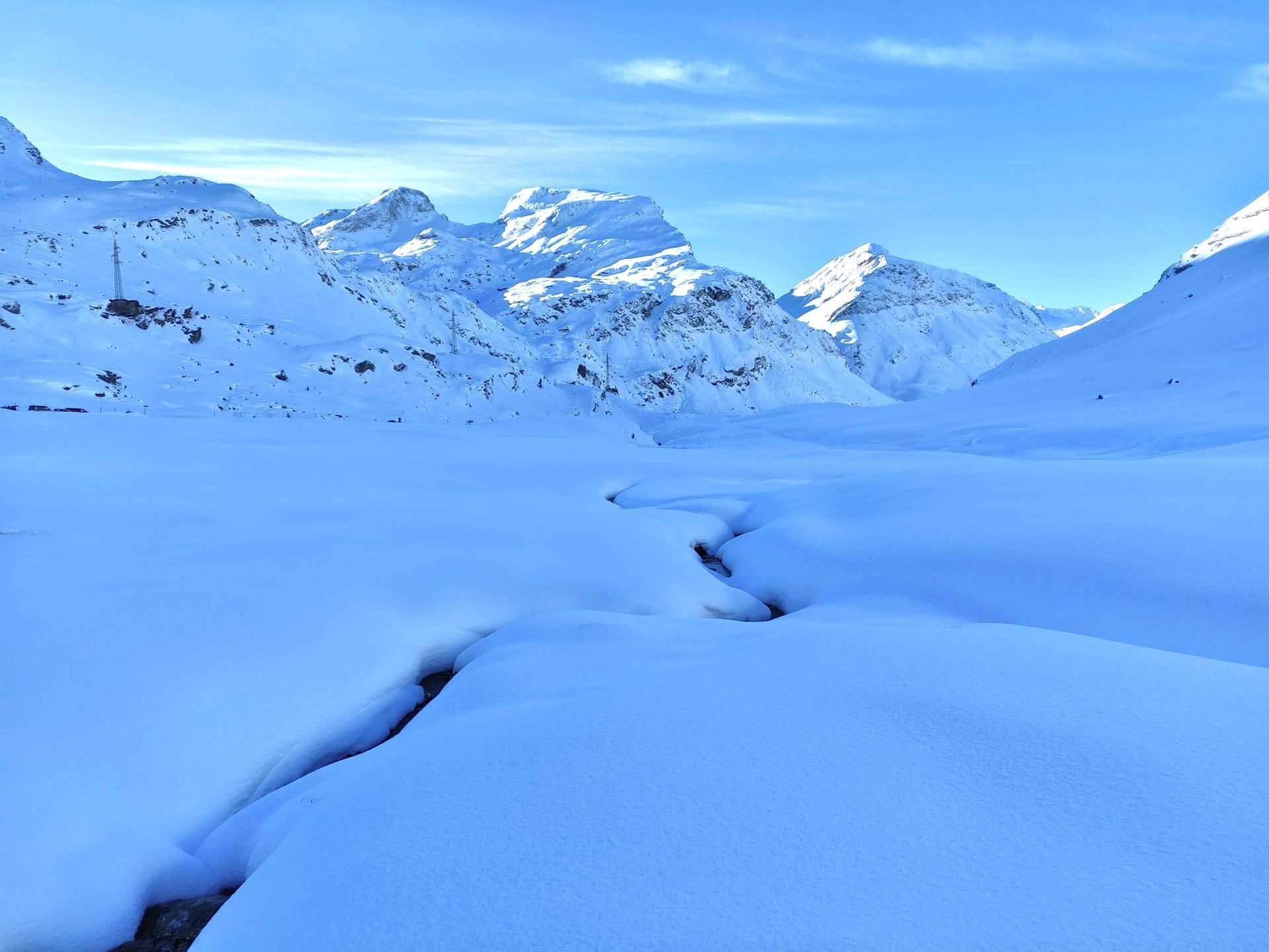 Iniziare quindi a salire mantenendosi sul versante idrografico destro della valle, con lungo traverso che passa sotto le pendici del Piz Bardella, evidente alla propria sinistra.