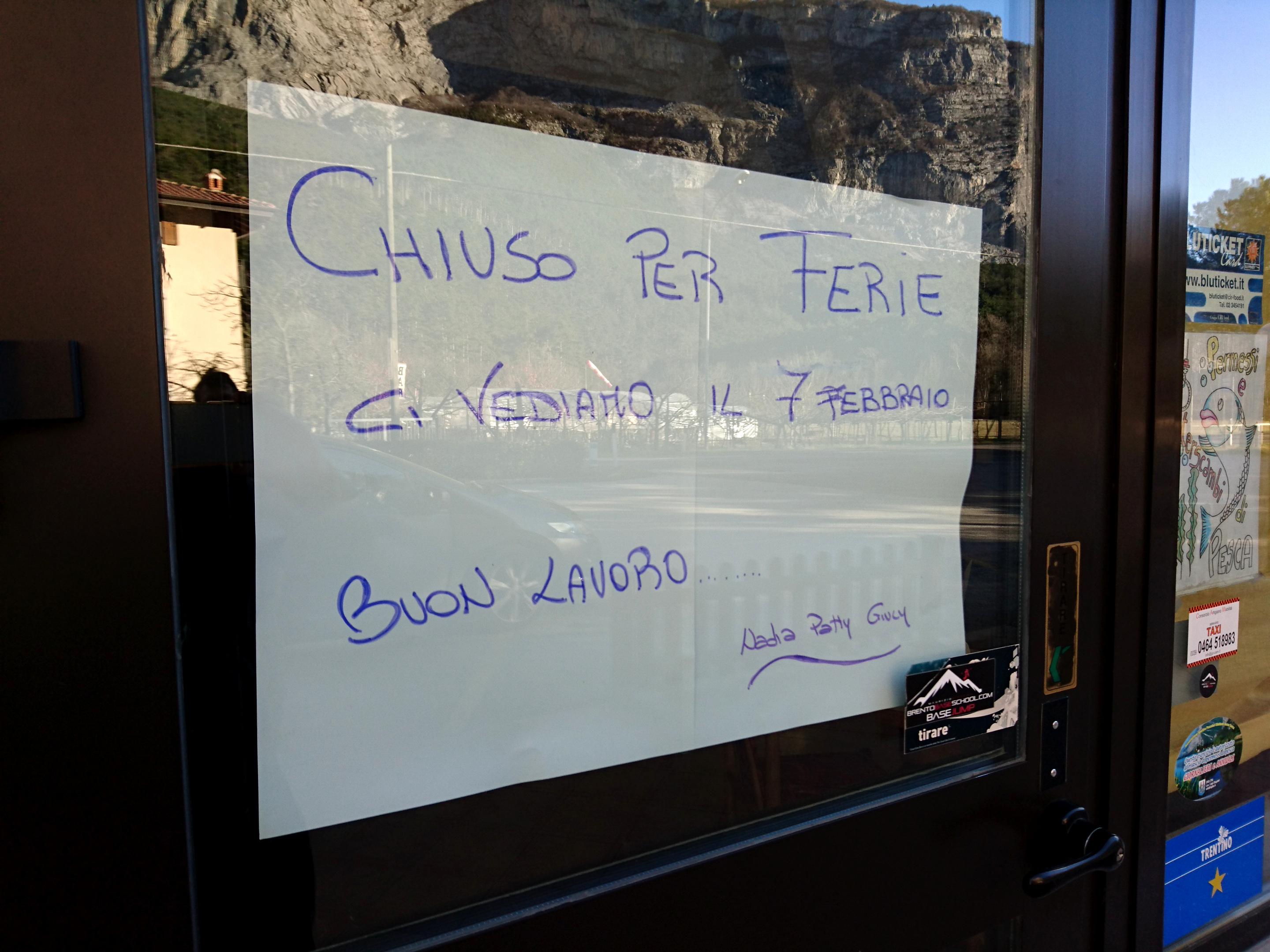 Abbiamo preferito quindi scendere ad Arco che grazie alla vicinanza del lago avrebbe potuto offrire temperature un filo più miti (si insomma….zero gradi invece di -10!) e un vento più moderato.