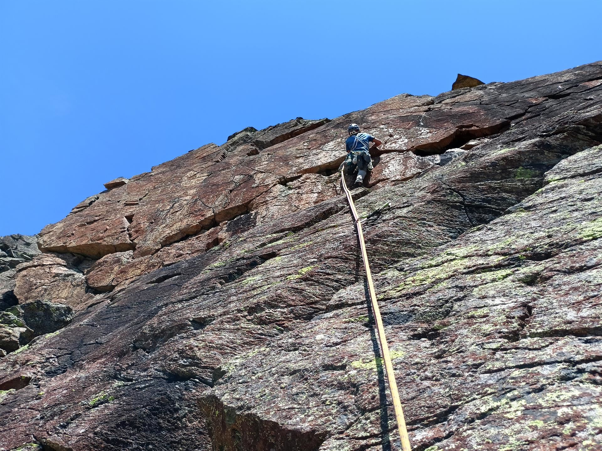 Le difficoltà sono sì contenute ma – a parte l’ultimo tiro – gli spit sono davvero distanziati tra loro. Vero è che tutti i tiri sono facilmente integrabili a piacere (friend medio piccoli) quindi bisogna “solo” avere un po’ di pelo.