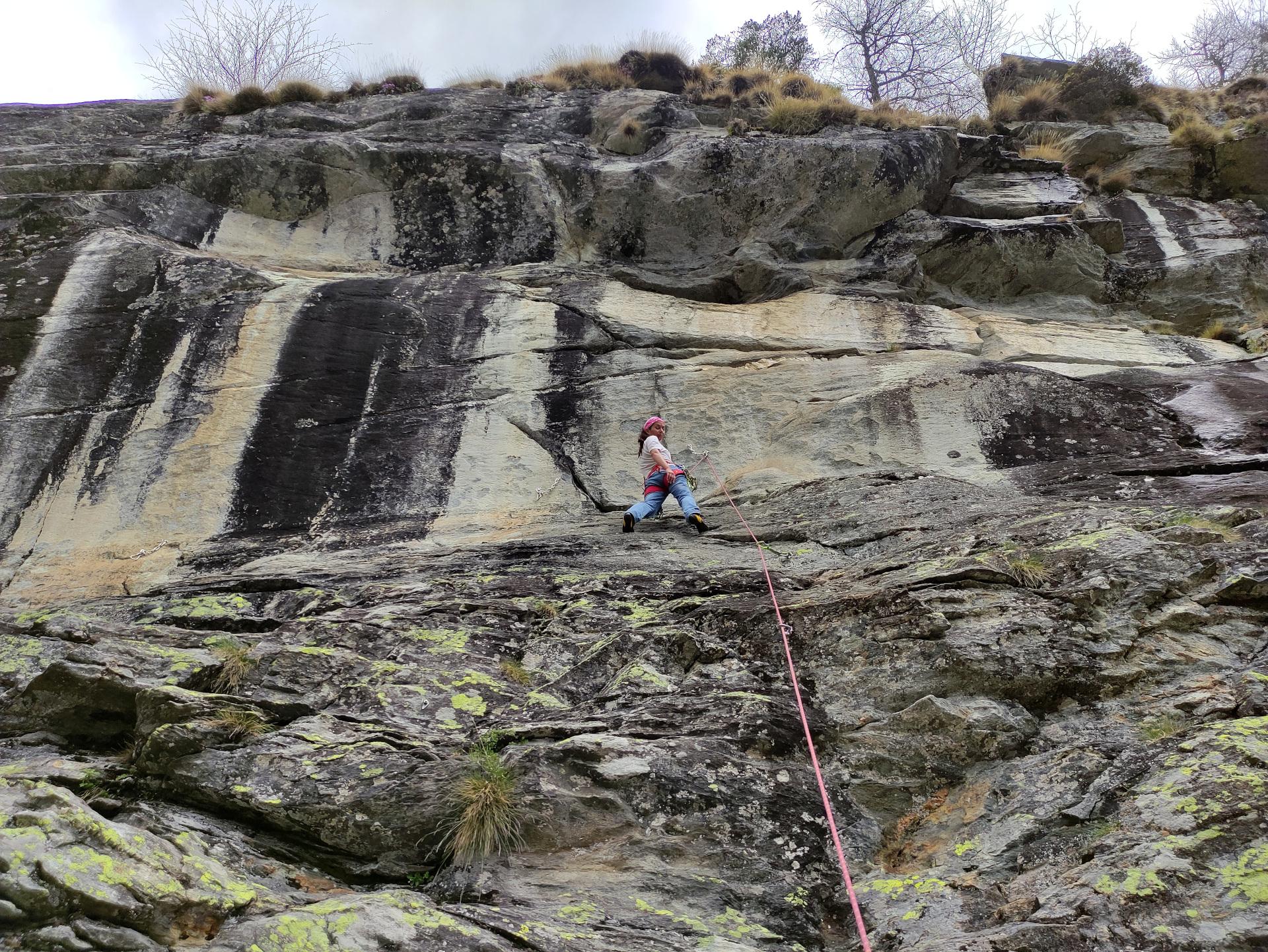Ora che finalmente la neve si è diradata, abbiamo deciso di farci un giro pure noi approfittando della presenza di una falesia a soli 10 minuti dal rifugio; più che altro un’ottima scusa per fermarci poi a pranzo ad assaggiare le leccornie di cui ci hanno parlato in più persone.