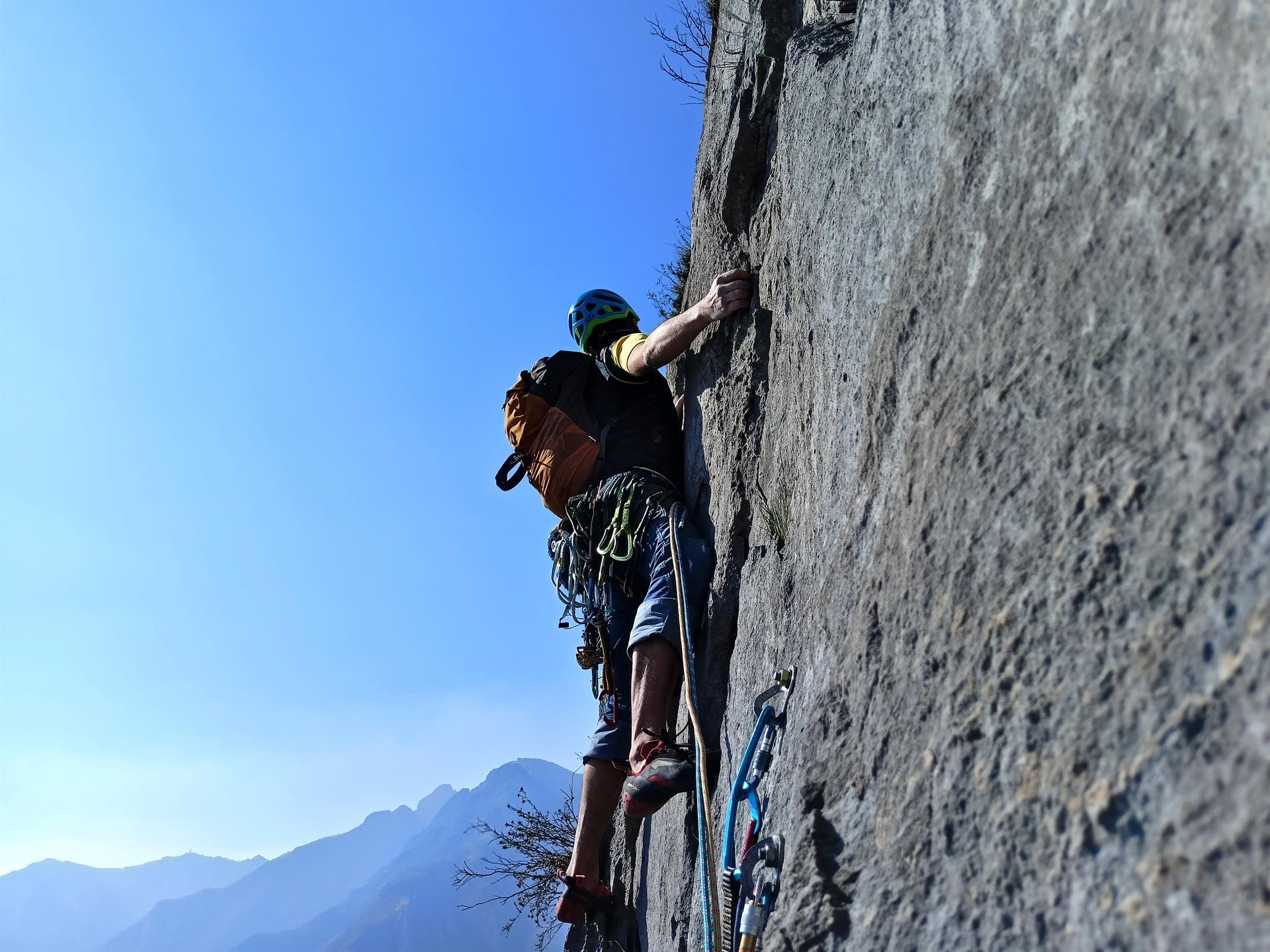 Belle entrambe! Tutto di traverso ha maggiore continuità ed è a nostro parere ben più impegnativa nell’insieme rispetto a Attraverso il passato, non tanto per il numero dei tiri, quanto per le difficoltà, che nella seconda si limitano ad un singolo passo.
