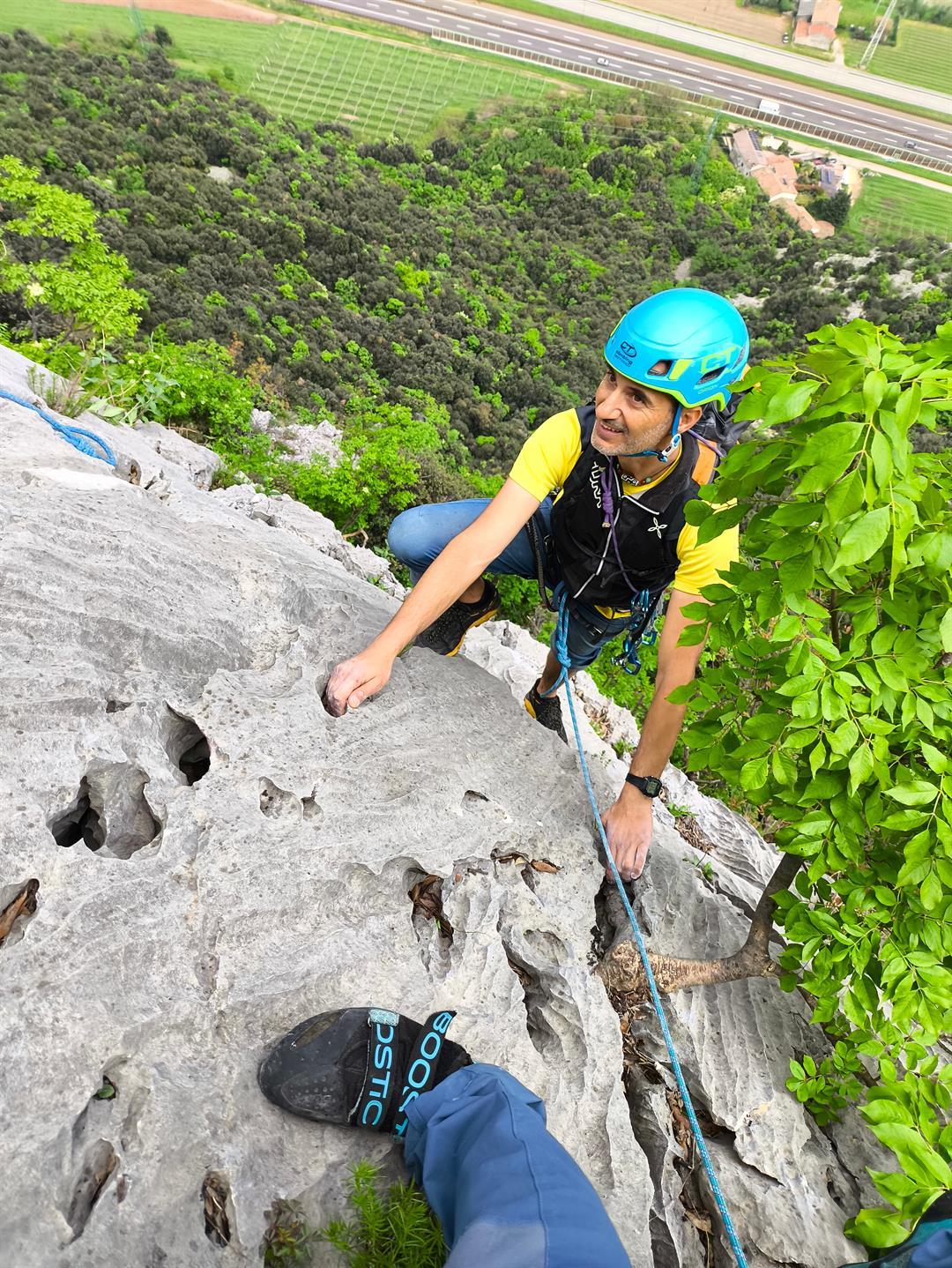 I tiri finali sono su un bel calcare grigio a buchi, facile e divertente, con protezioni un po’ più distanti ma eventualmente integrabili a friend, per chi volesse.