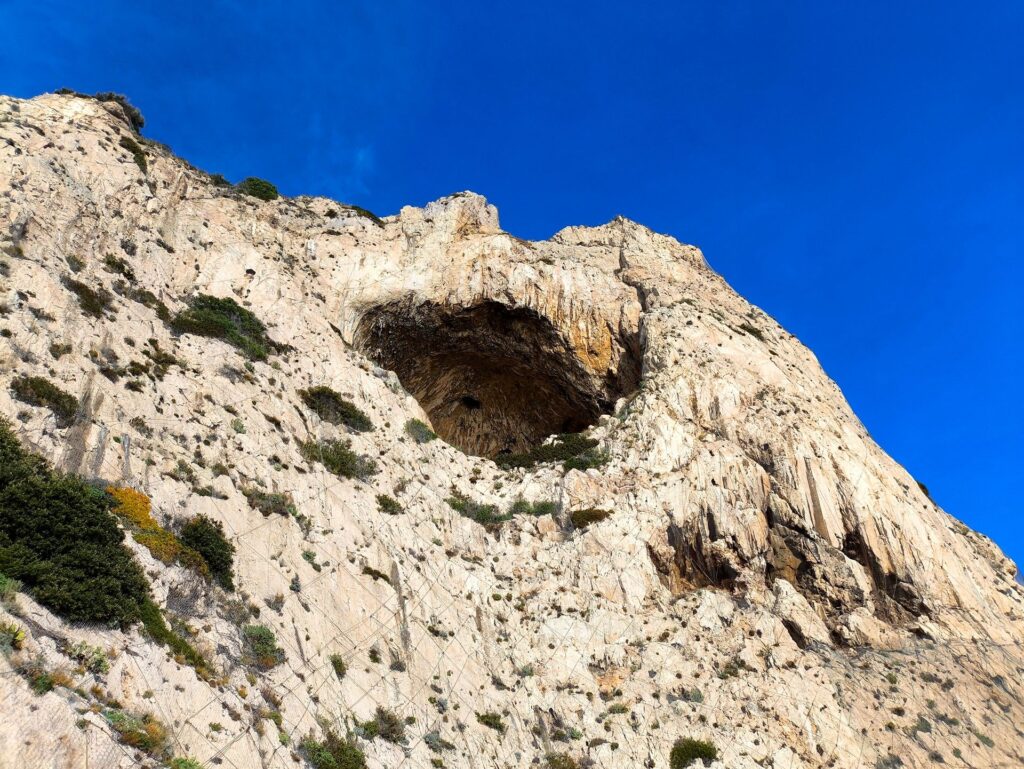 Nonostante l’affollamento la via si porta a casa rapidamente, lasciando il tempo per una falesiata a Nolitudine (vedi link a fine articolo) oppure per una visita alla bella Grotta dei Falsari, che è subito sopra l’attacco della via.