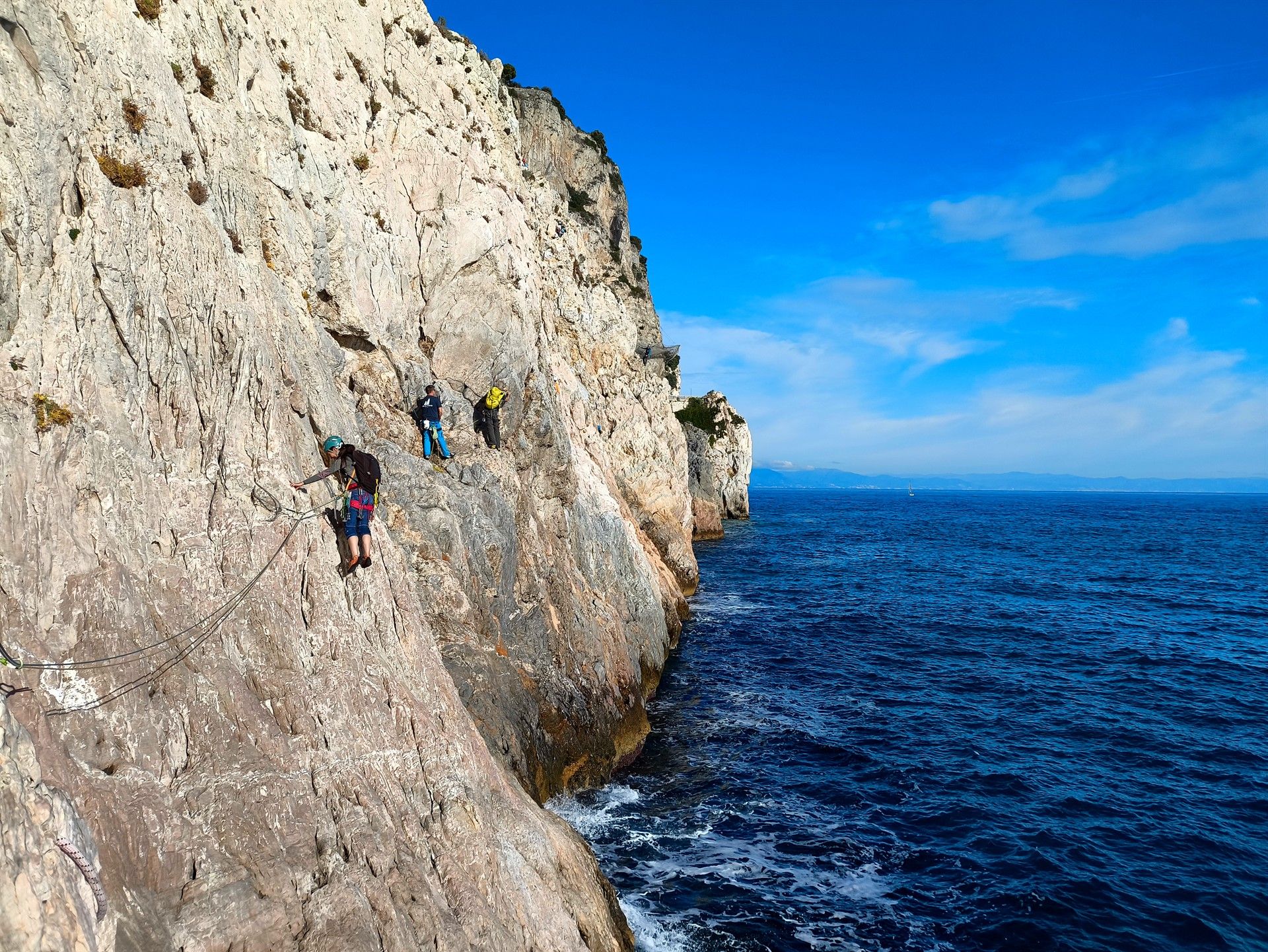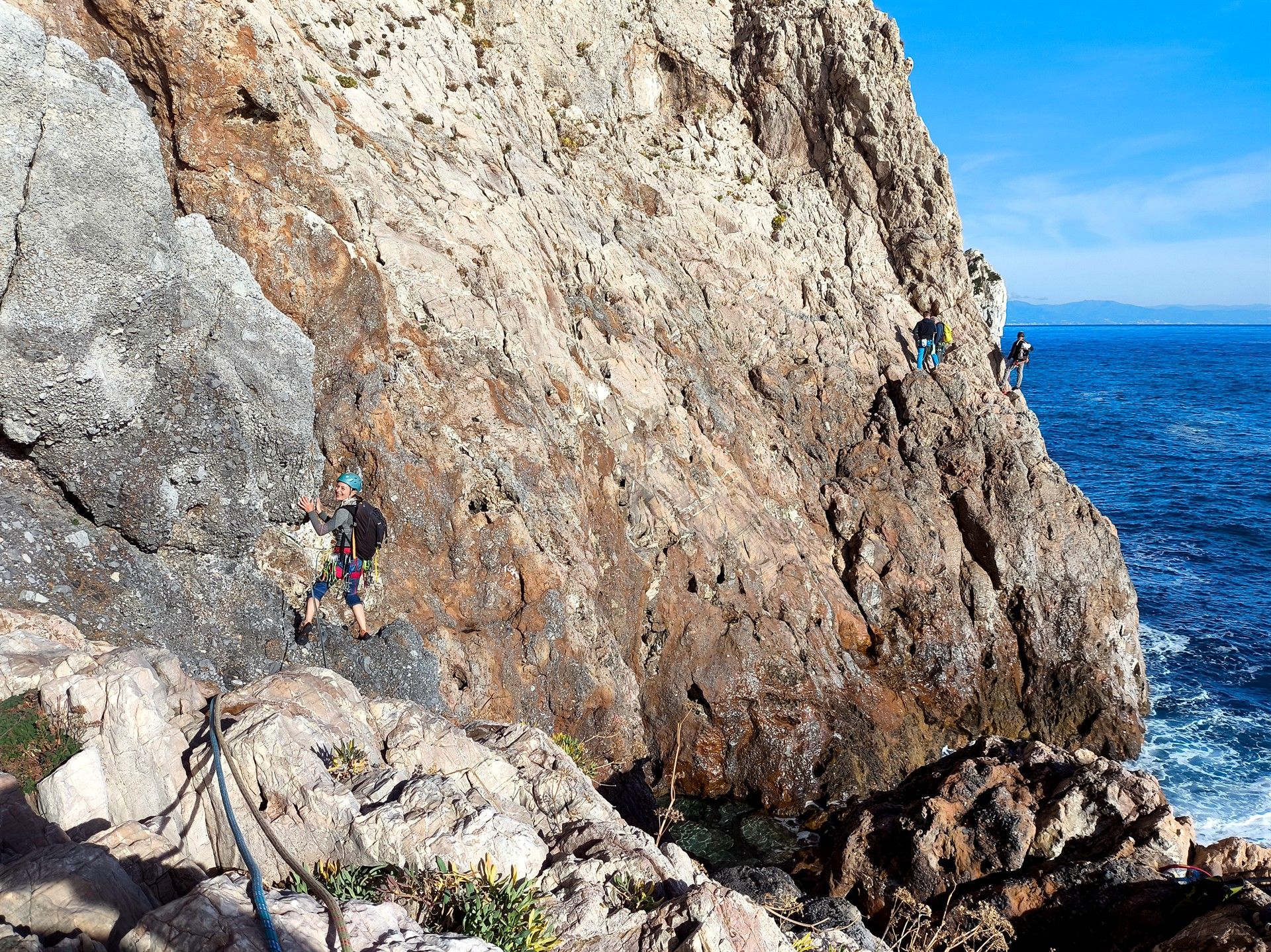 Dopodiché il fatto che non si superi mai il IV grado non significa che sia alla portata di chiunque: l’ambiente è per forza di cose isolato: infatti, pur trovandosi a poche decine di metri al di sotto dell’Aurelia il rumore delle onde e la risacca coprono eventuali richiami e il telefono non sempre ha campo, quindi – trattandosi poi di un traverso – sia il primo sia il secondo di cordata devono essere totalmente autonomi e in grado di districarsi da possibili difficoltà.