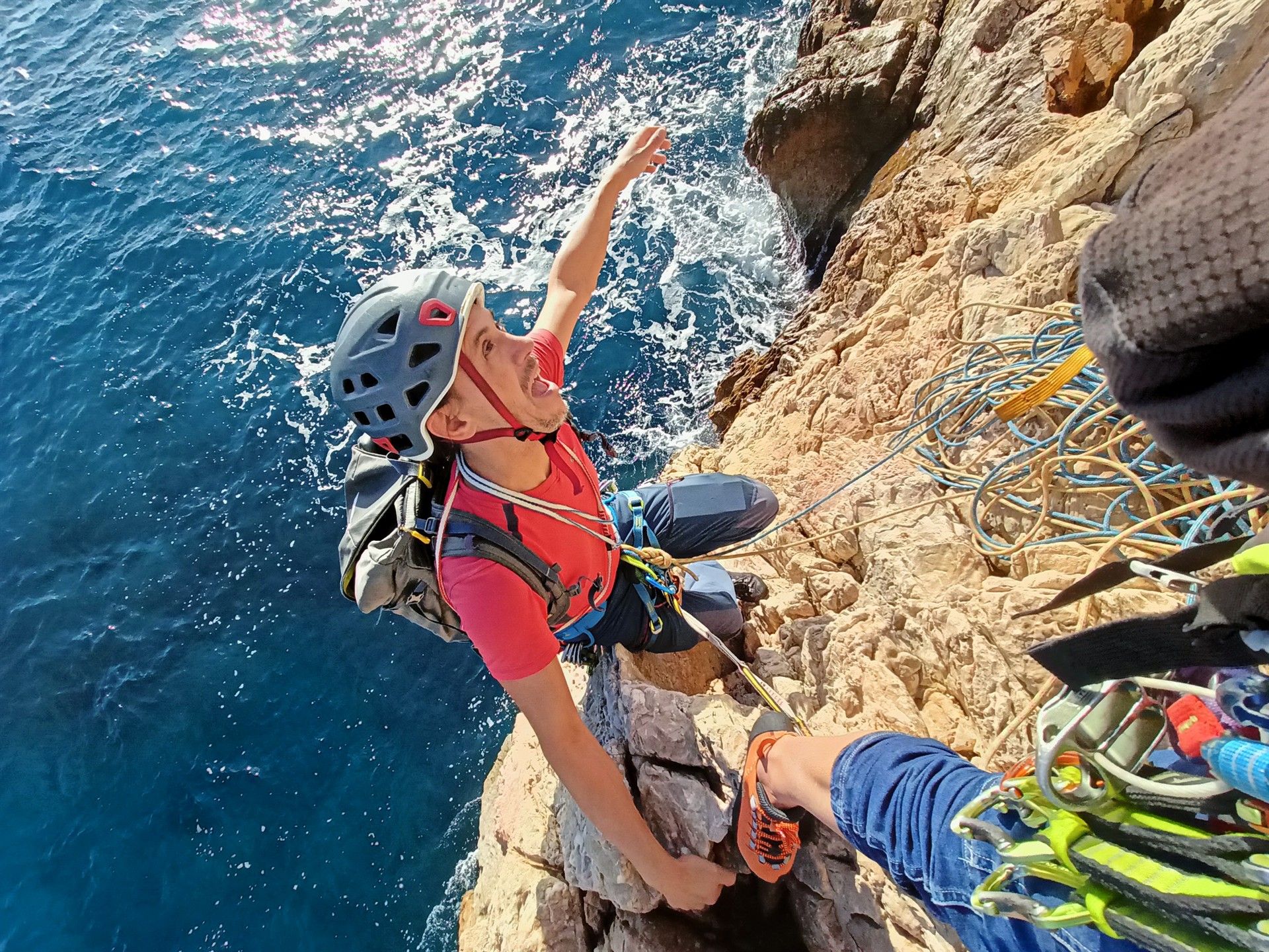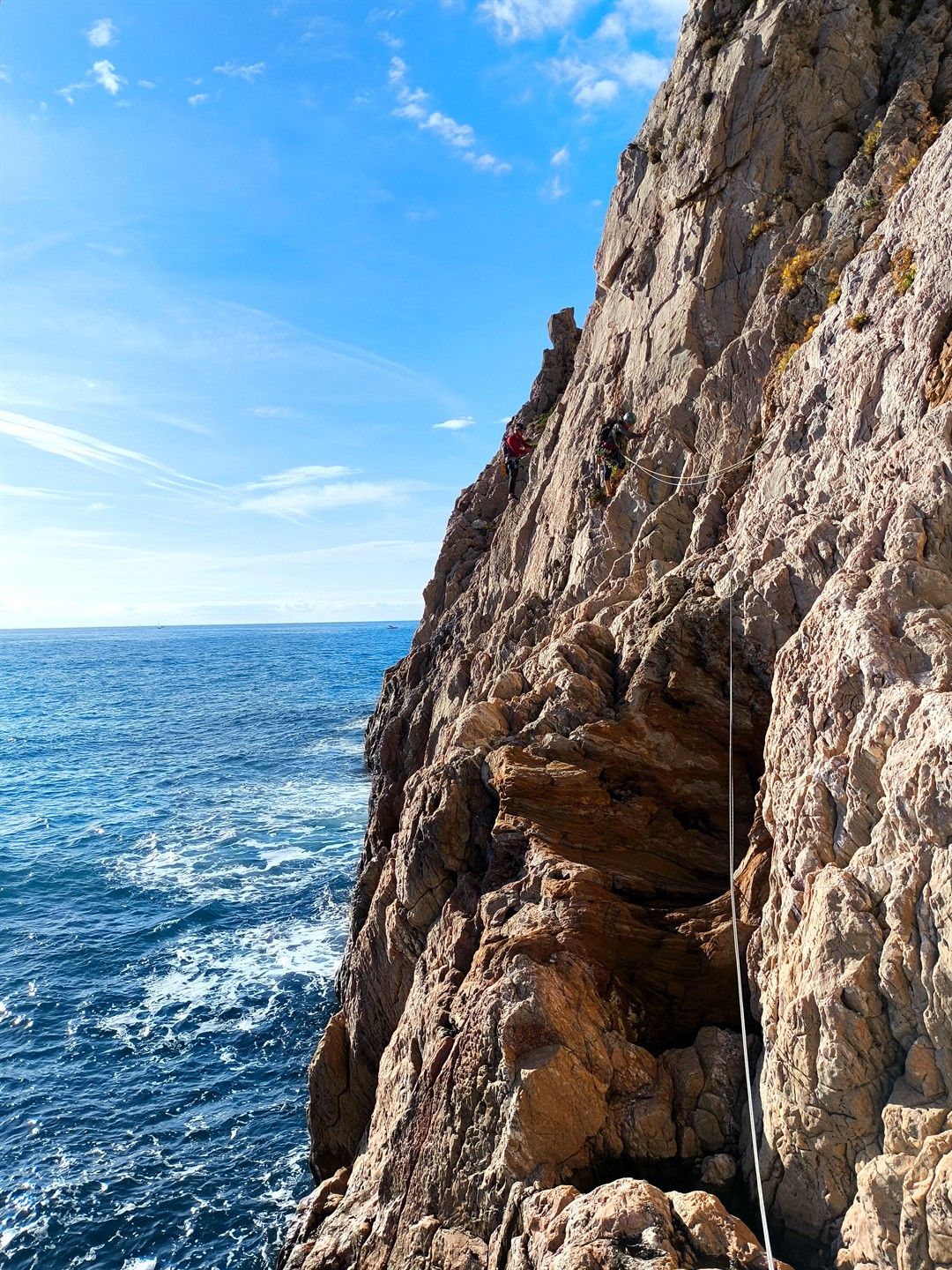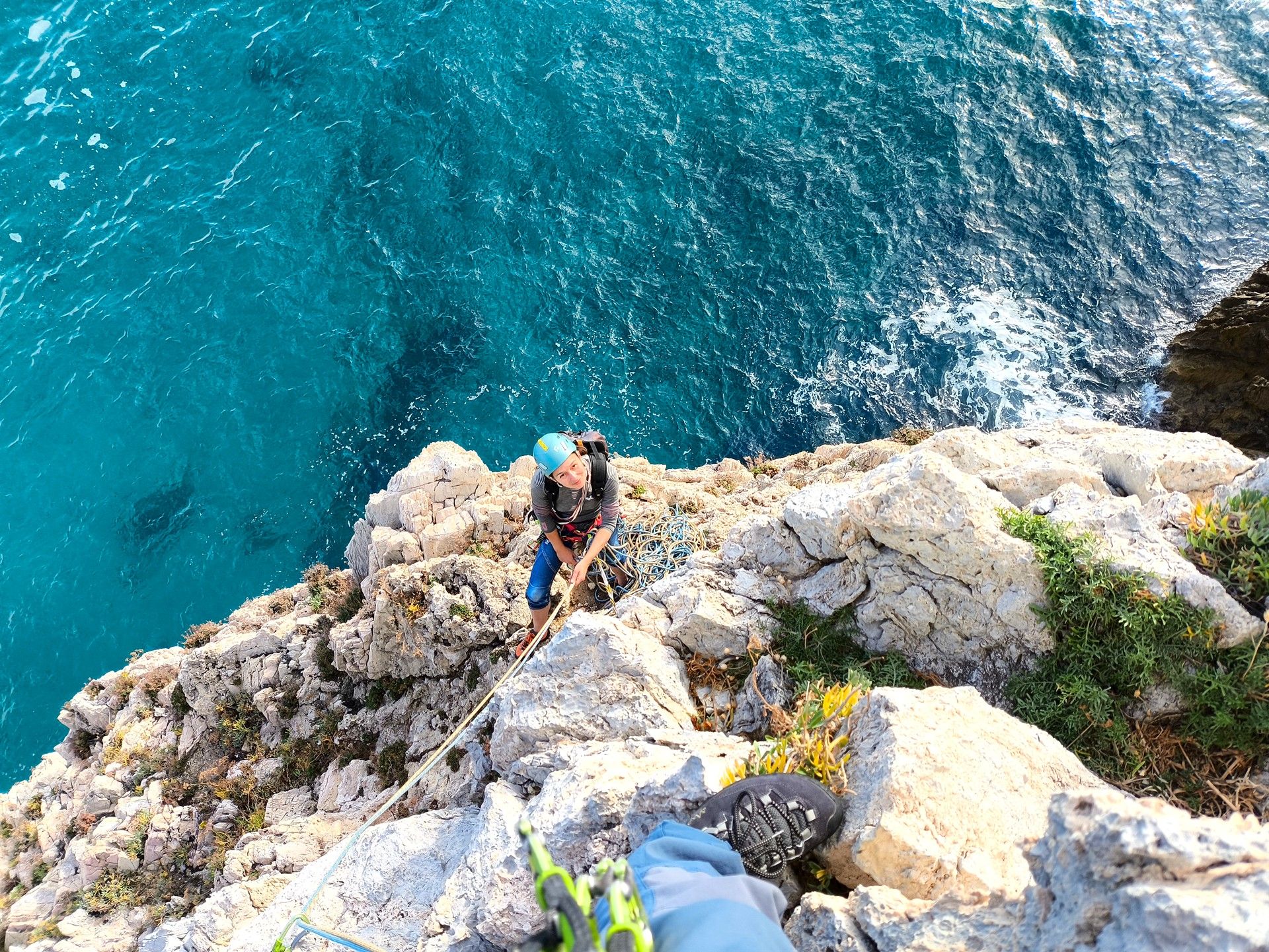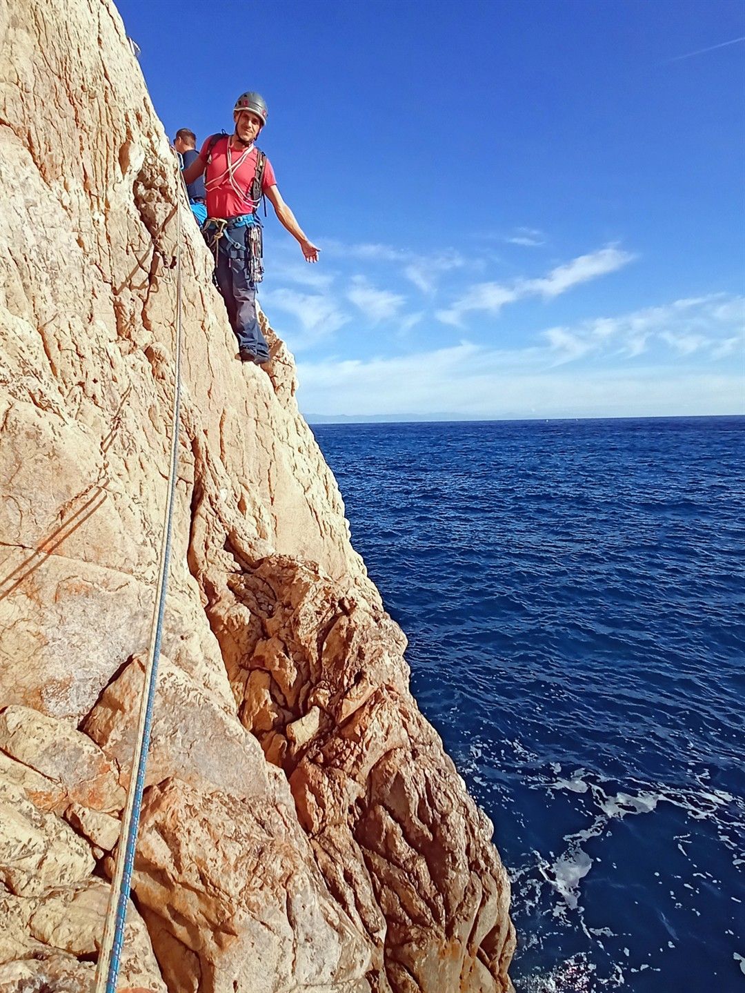 Il bello di questa via è l’ambiente, certo non l’arrampicata, ma quello vale tutto: se siete al limite del grado per le più impegnative In Scio Bolesomme e Traverso del Capo o semplicemente non avete voglia di sbattervi, questa Cercando sul mare è una validissima alternativa per respirarne comunque il profumo e ascoltare il respiro delle onde.