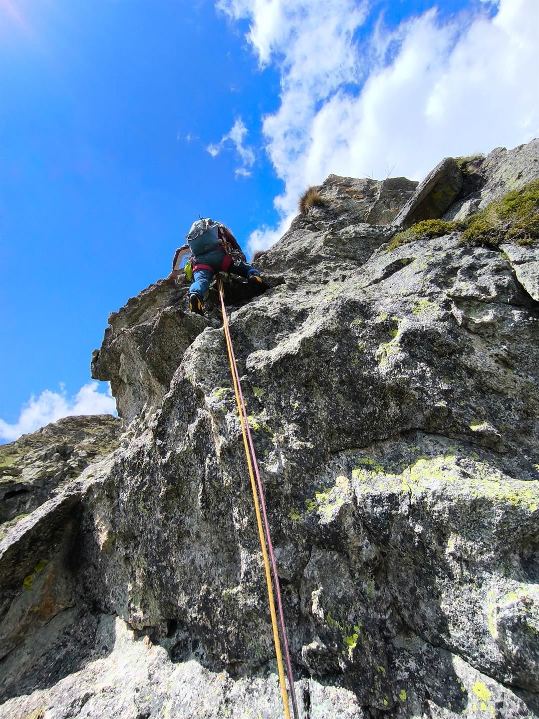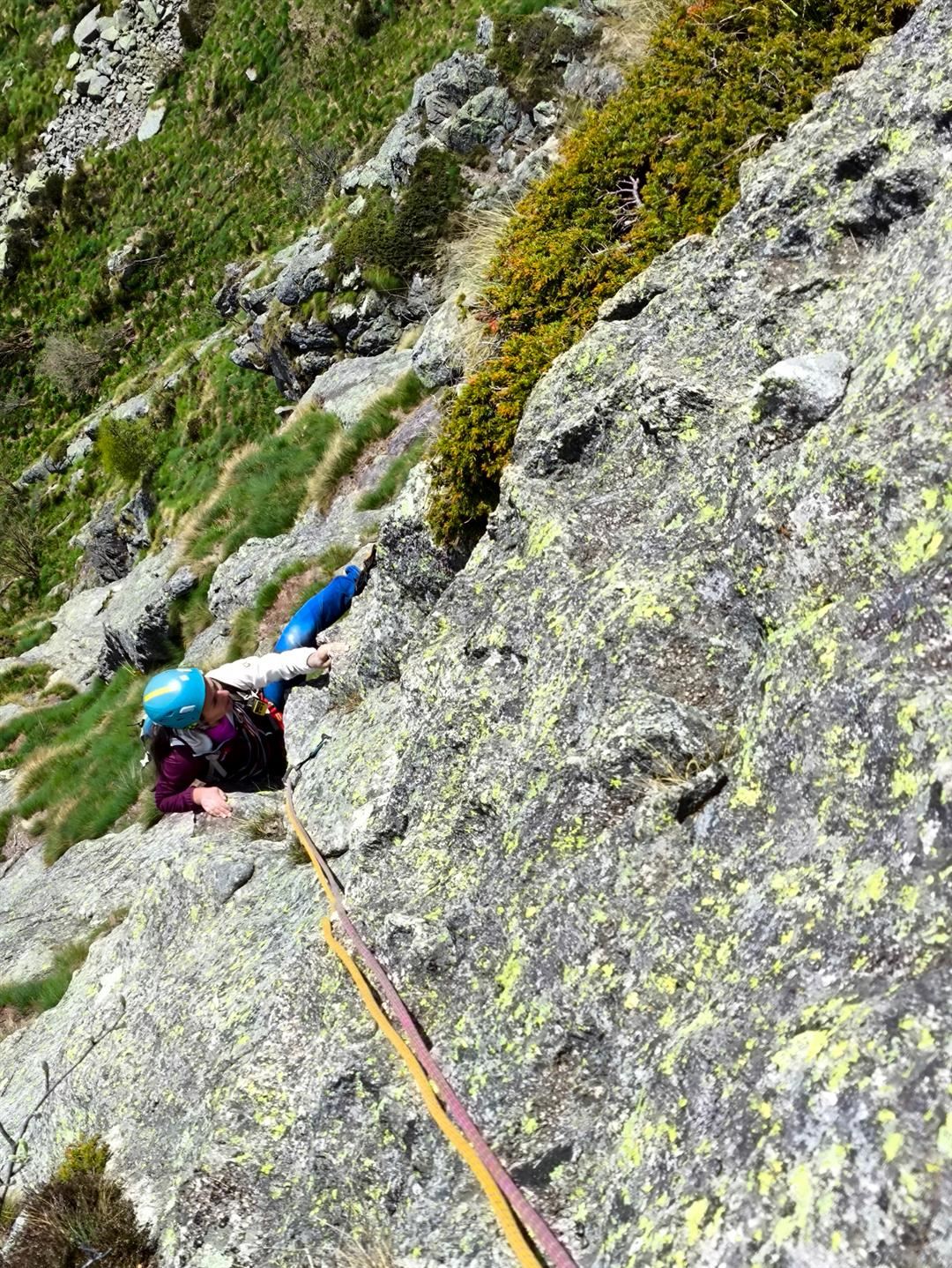 L’ambiente è piuttosto selvaggio; nonostante il sentiero di fondo valle sia frequentato da chi sale, per esempio, lungo la Normale del Monte Bo, appena fuori da esso le tracce sono labili e il fuori traccia è ovviamente in puro stile ravanage (quanto ci mancava!). La via è stata una piacevole scoperta, soprattutto per il granito veramente super, restando sul facile, addirittura spittata – a volte lunga, ma siamo in montagna… è il minimo.