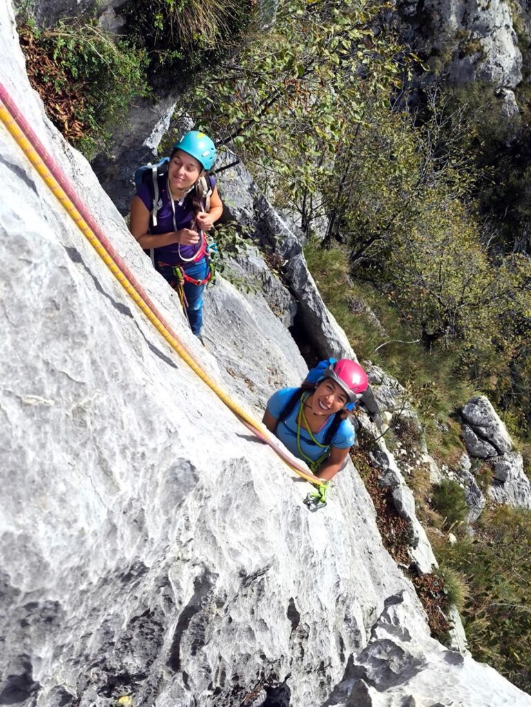 Questa via non ha certo bisogno di presentazioni, eppure, nella nostra “carriera alpinistica”, è rimasta lì in attesa fino ad oggi, cosa che ci sembra quasi incredibile dopo averla ripetuta! E altrettanto incredibile (per noi) è che la cordata di oggi abbia una maggioranza di quote rosa 😉