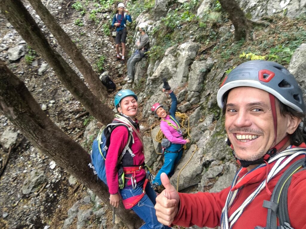 C’è da dire però che a nostro avviso non è una via per neofiti, per quanto i gradi originali lo possano far pensare. Richiede una certa sicurezza nei movimenti e sul grado massimo proposto (che come spesso accade qui in Angelone è dato stretto), quindi a nostro avviso si tratta più di un fantastico sfogo per alpinisti di lunga data che hanno piacere di godere di una via plaisir su un calcare magnifico piuttosto che di una via di battesimo 😉