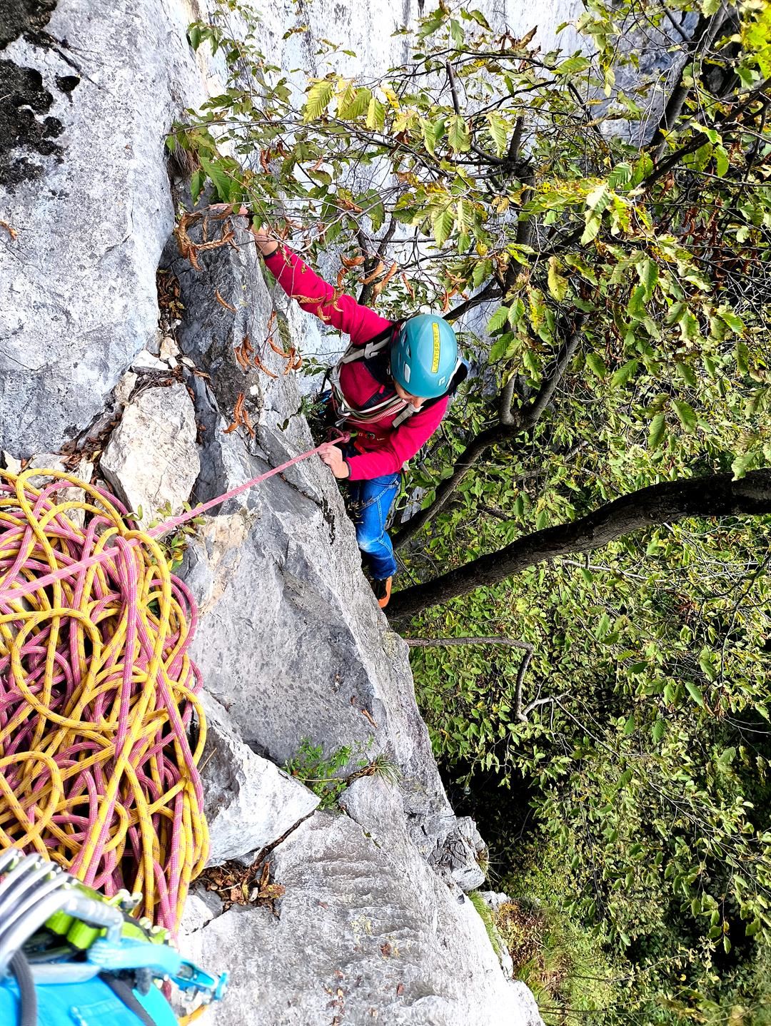 Dopo però si esce al sole e la situazione migliora decisamente oltre al fatto che la roccia dal terzo tiro in poi diventa magnifica e goduriosa, con solo qualche punto di attenzione verso rocce ballerine e pericolose.