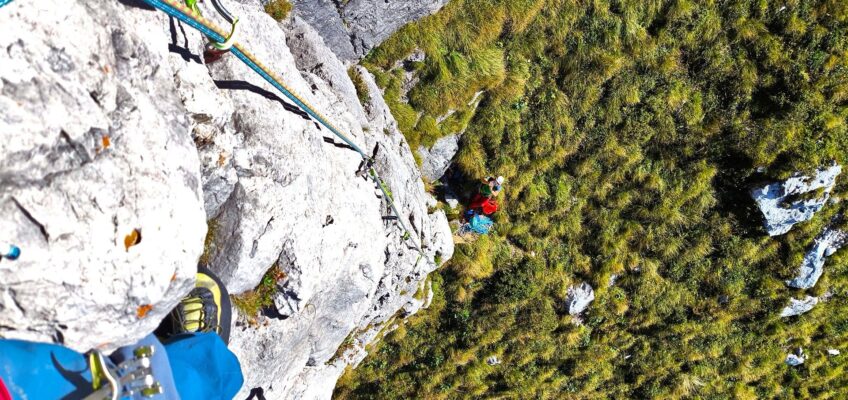Il meteo era troppo incerto per fare due giorni fuori e poi, dopo aver recuperato un po’ di gamba sul Pizzo Rachele, avevamo voglia di scalare… ma questa volta su calcare.