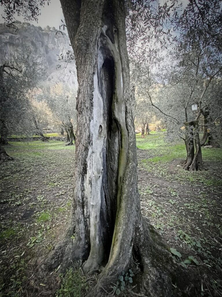 E’ bizzarro, ma nella zona di Arco non avevamo mai esplorato le pareti del Monte Baone: è stata una bella scoperta trovare roccia più che buona in un ambiente davvero gradevole, con bellissimi uliveti che si estendono fin quasi sotto le pareti e che si attraversano per arrivare all’attacco.