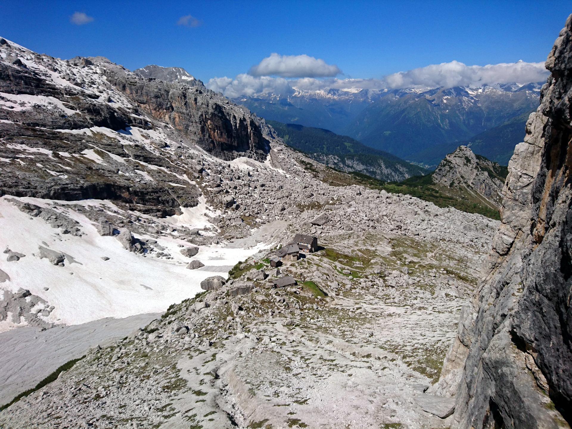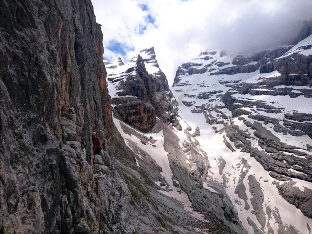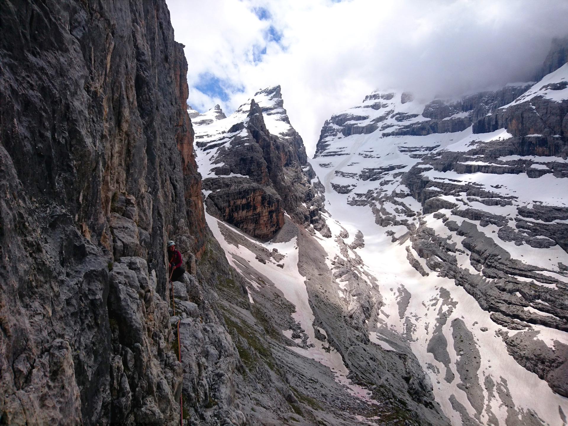 La metà di giugno in genere è un po’ presto per andare a scalare in Brenta ma complice la poca neve dell’inverno ero abbastanza sicuro che la parete sud del Castelletto fosse assolutamente già scalabile, valutazione che in effetti si è rivelata corretta.