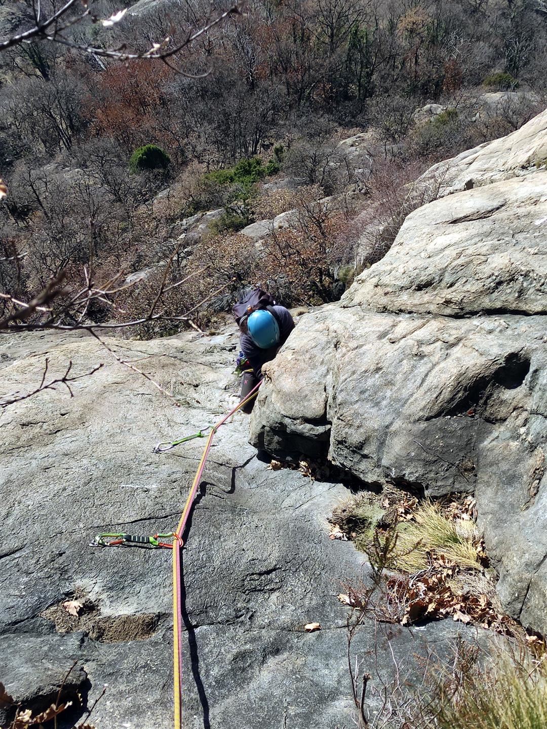 - 5a (25m) – Dritto per facile placca fino alla sosta.
