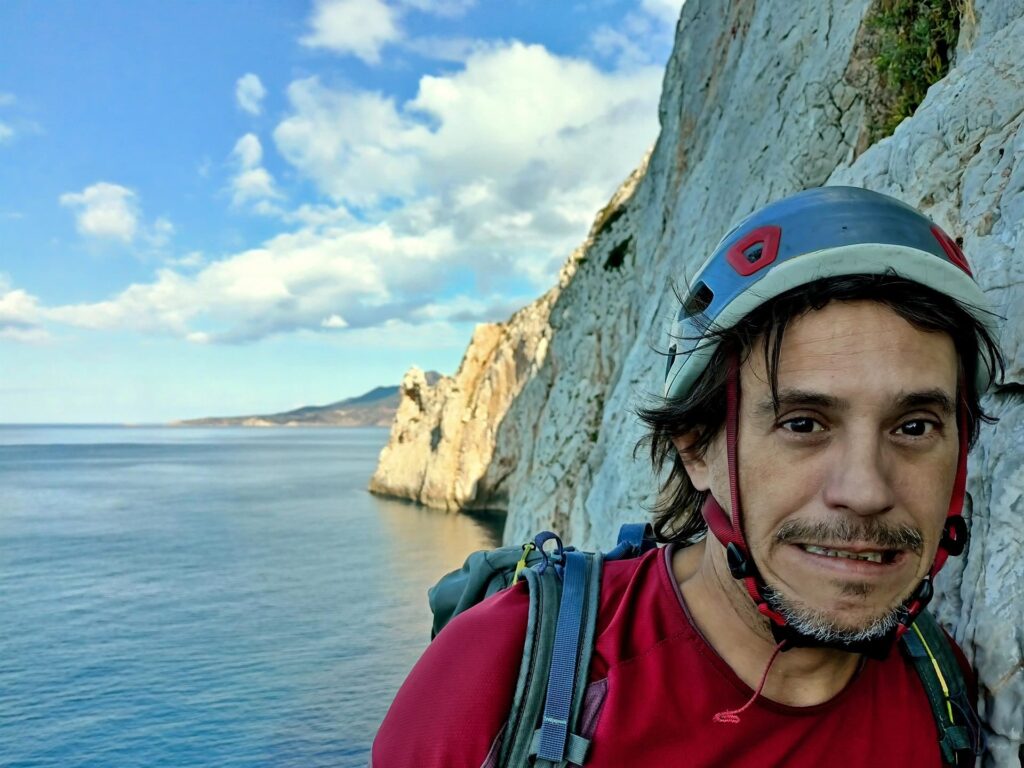 La scogliera di Pranu Sartu è uno dei posti più belli, più ispiranti, più incredibili anche dal punto di vista della roccia su cui scalare. Ed è un luogo tranquillo, in cui si è soli con il mare: un mare che diventa uno specchio blu della consistenza del piombo sotto le corde, qualcosa di astratto e quasi incomprensibile, piatto, immutabile, di cui si fa fatica a comprendere la distanza.