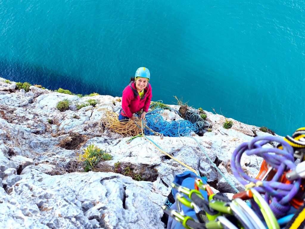 Fate attenzione nell’ultima calata perché la via parte circa 5 metri sopra al mare e quindi bisogna evitare di lanciare giù le corde perché altrimenti finirebbero in acqua.